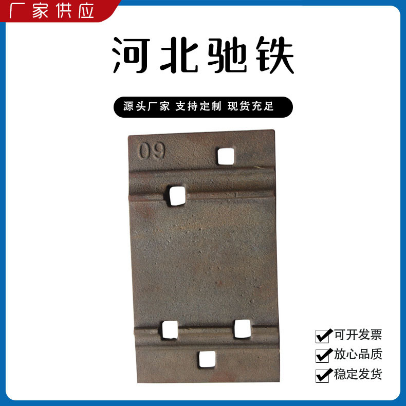 主要產(chǎn)品:鐵路配件、行車(chē)配件、工礦配件、魚(yú)尾板、道釘、壓軌器、軌道壓板、軌距拉桿、護(hù)軌扣板、T型螺栓、魚(yú)尾螺栓、彈條、軌距擋板
